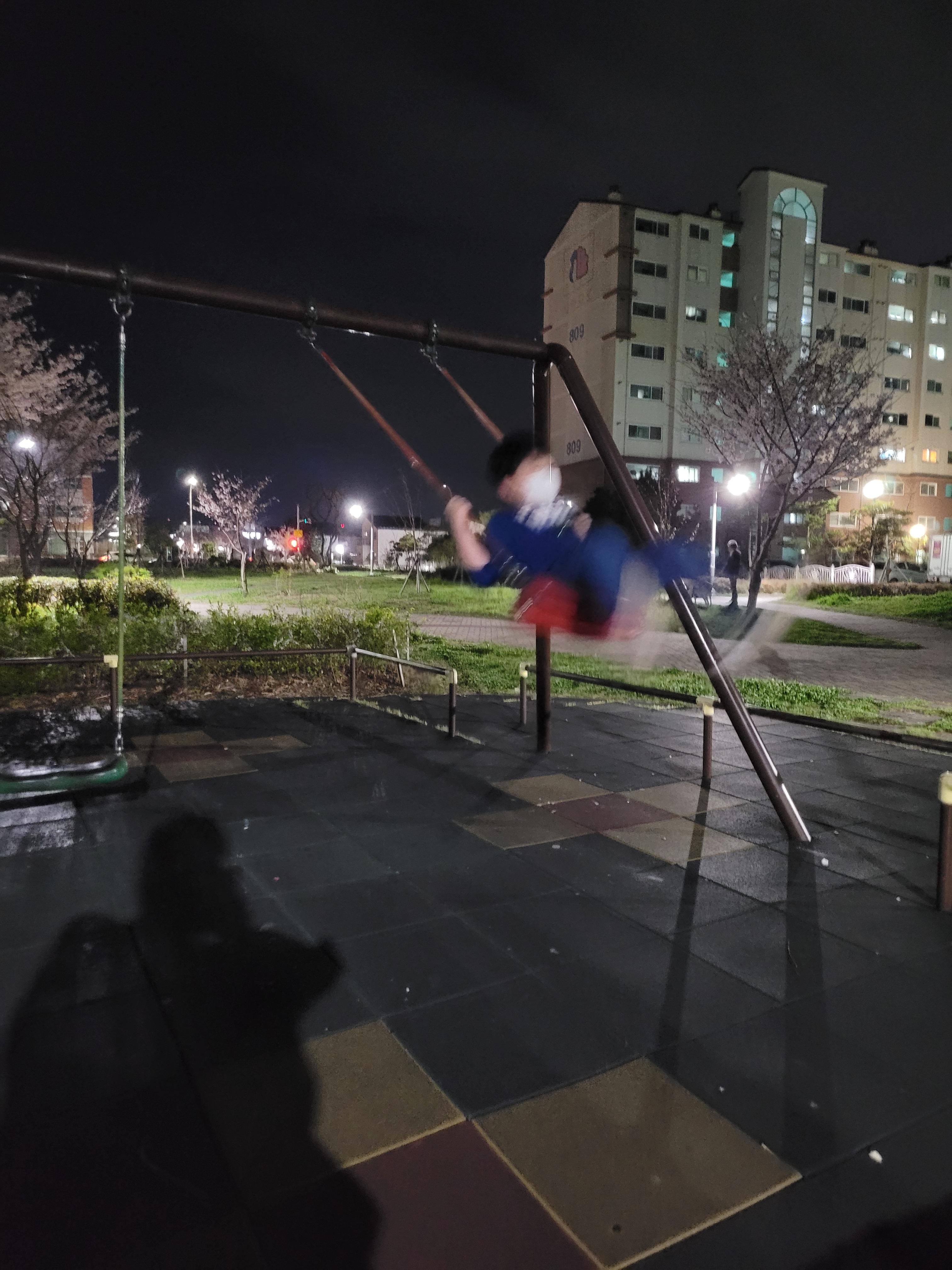 집으로 돌아오는 길, 공원에 있는 놀이터에 들러 그네도 한번 타 주신다.