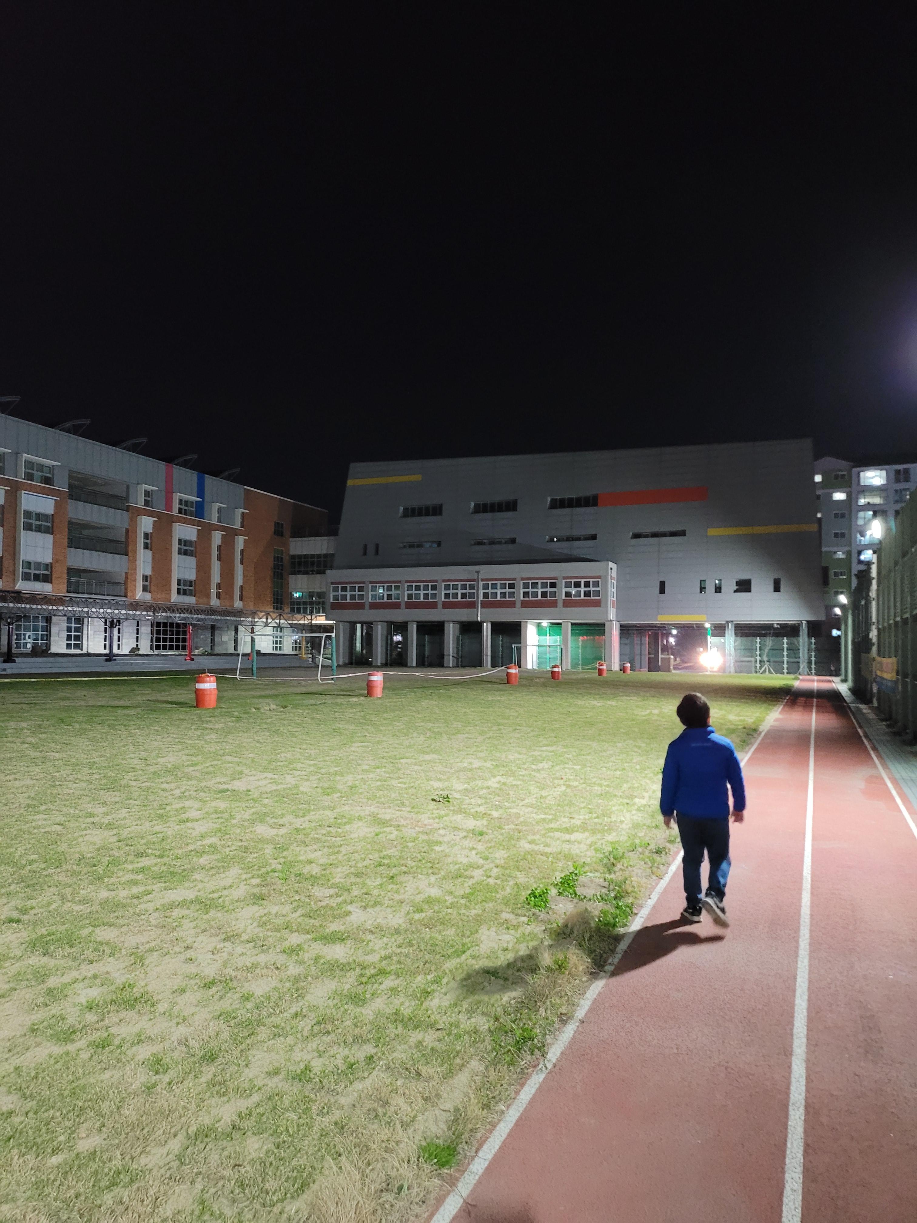 좀 멀리 떨어져있는 초등학교 까지 가서 운동장을 한바퀴 돈다.