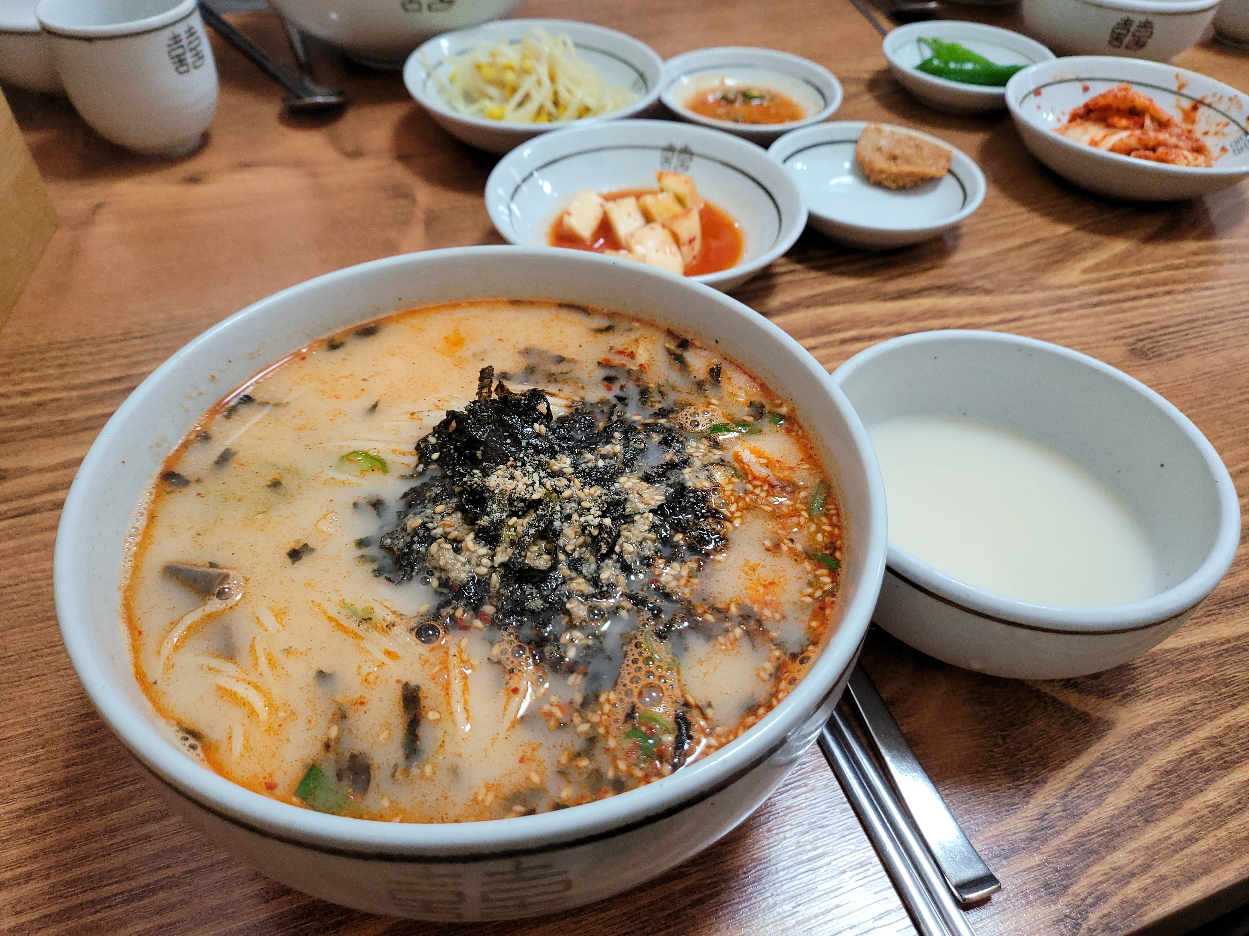 진한 순대국에 밥대신 면을 말아놓은 맛,
